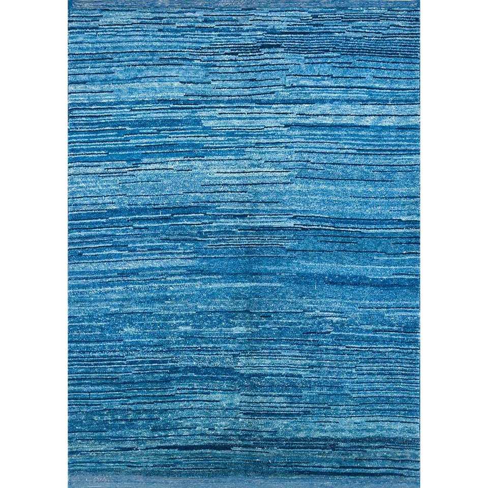 Alfombras de Lana Anudadas a Mano Nuray Azules 9x12, Estilo Oriental a Rayas, Rectangulares Hechas a Mano para Dormitorio, Sala de Estar, para Adolescentes - Pae-929