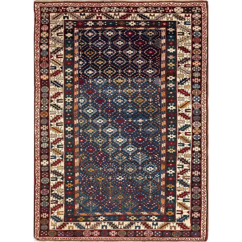 Alfombras de Lana Anudadas a Mano Nuray Blue, Diseño Geométrico de Diamantes para el Hogar, para Sala de Estar y Dormitorio-PAEM-1031
