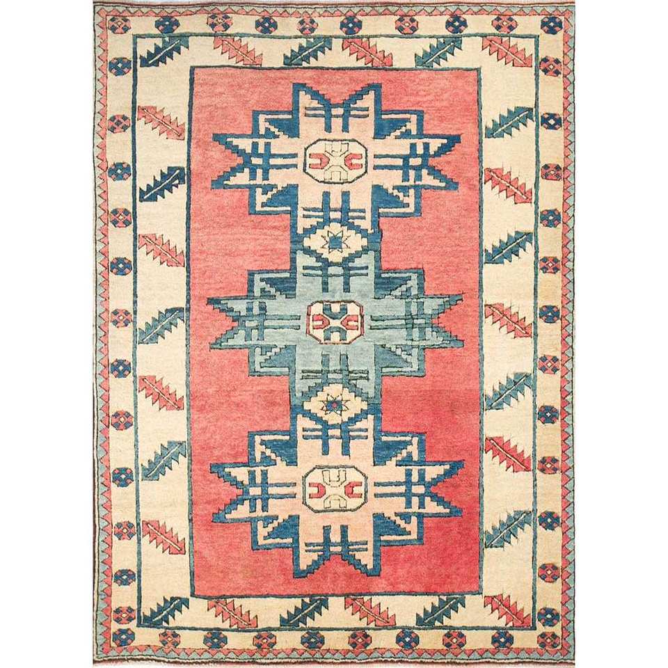 Alfombras de Lana Anudadas a Mano con Diseño Geométrico Nuray, 9x12, Rectangulares Abstractas para el Hogar, para Sala de Estar o Dormitorio, Modelo Pae-1188 en Rojo y Naranja