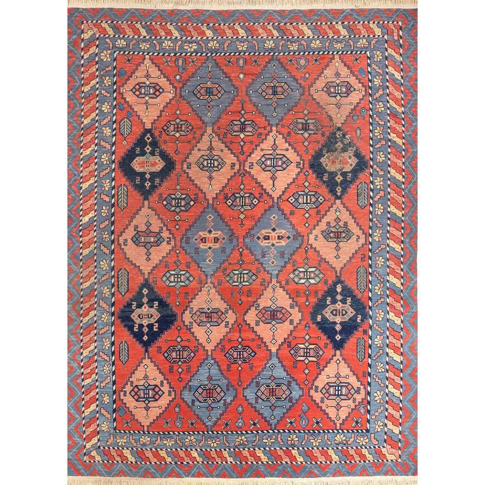 Alfombras de Lana Anudadas a Mano con Diseño Geométrico Nuray, 9x12, Patrón Abstracto Rectangular para Pasillo, Sala de Estar y Dormitorio en Rojo y Naranja-Pae-4921