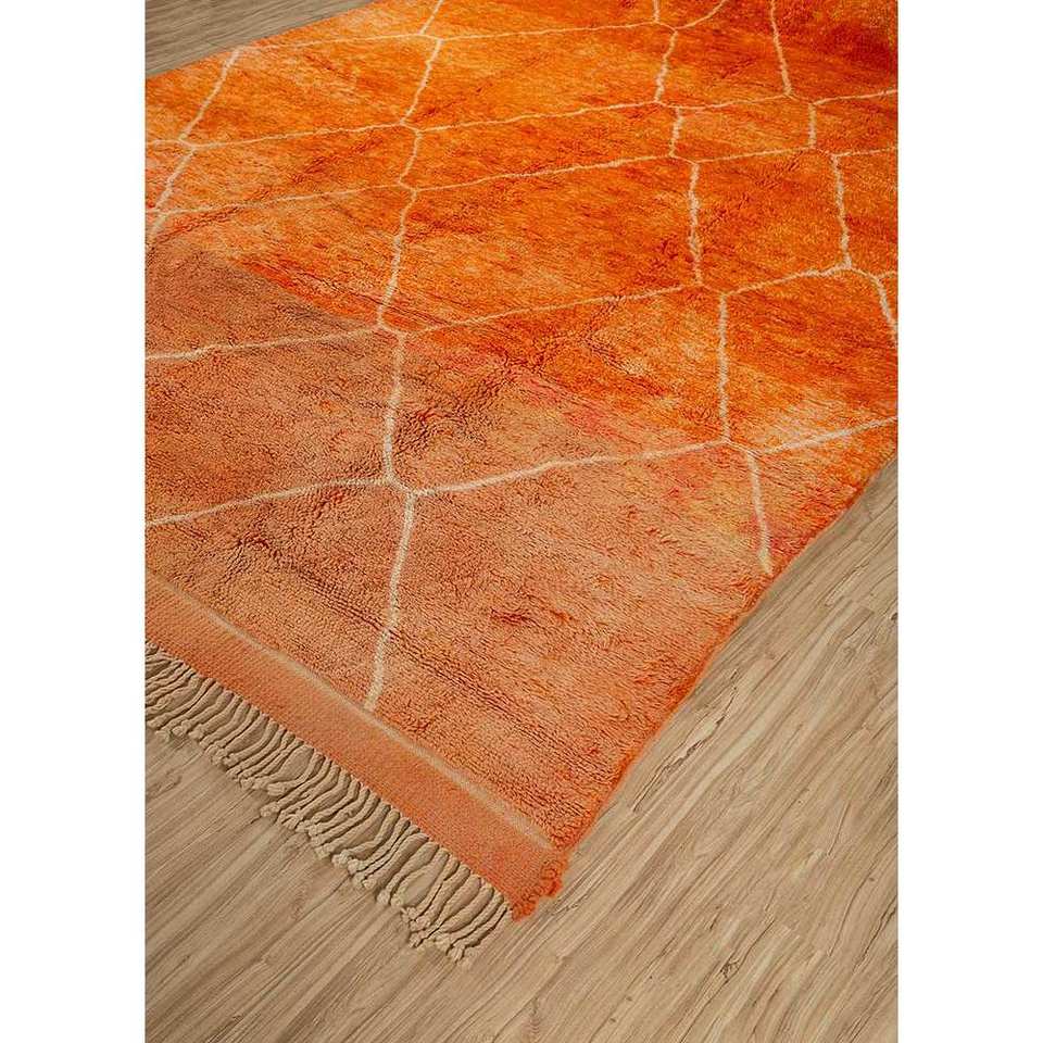 Alfombras de Lana Anudadas a Mano con Diseño Geométrico Nuray, 9x12, Rectangulares, para Sala de Estar, Dormitorio, Pasillo, Esquema de Color Naranja Rojo-Pae-4626