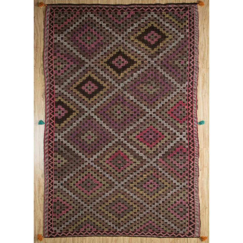 Alfombras de Lana Anudadas a Mano Nuray, Rosadas y Moradas, Geométricas, Estilo Boho, Rectangulares, 9x12, para Decoración de Sala de Estar, Pasillo, Modelo Sdkl-06