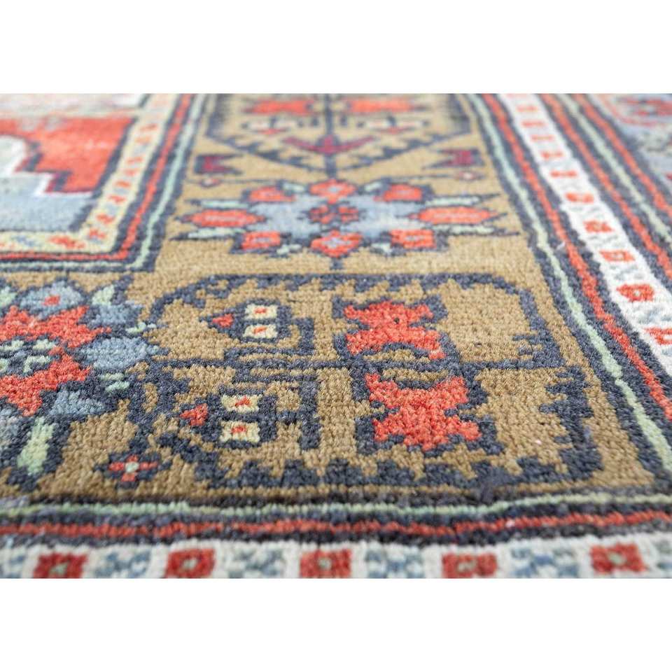 Alfombras de Lana Anudadas a Mano Nuray, Diseño Rectangular con Medallón Rojo Naranja y Patrones Abstractos para el Hogar, para Sala de Estar y Dormitorio, 9x12, Pae-2968