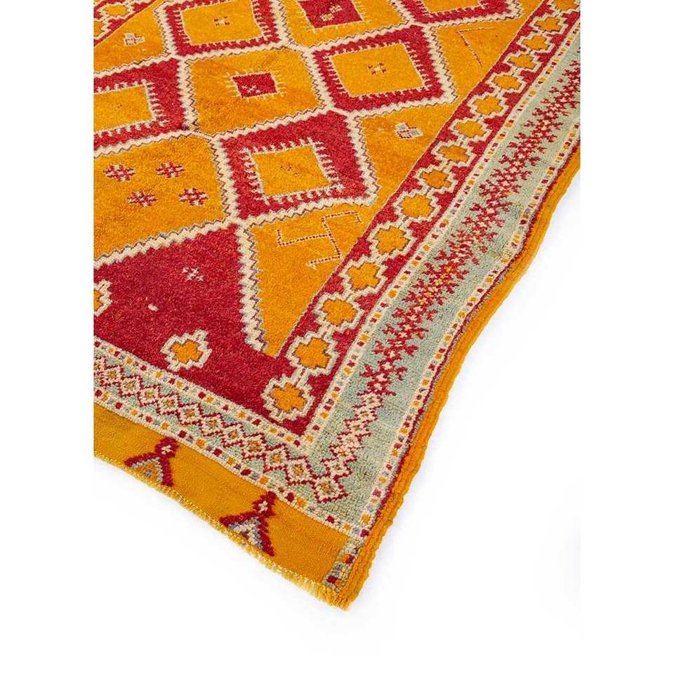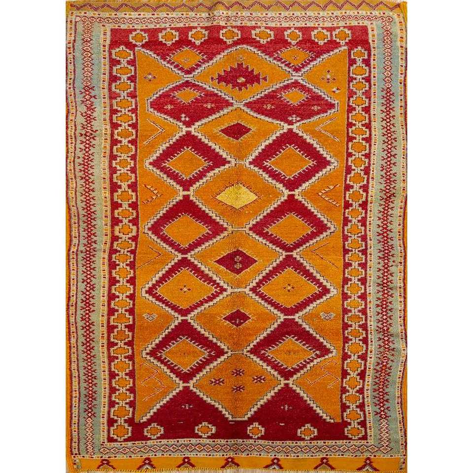 Alfombras de Lana Anudadas a Mano Nuray, Patrón Geométrico Rojo y Naranja, Gran Tamaño 9x12 para Decoración de Sala de Estar -Pae-145