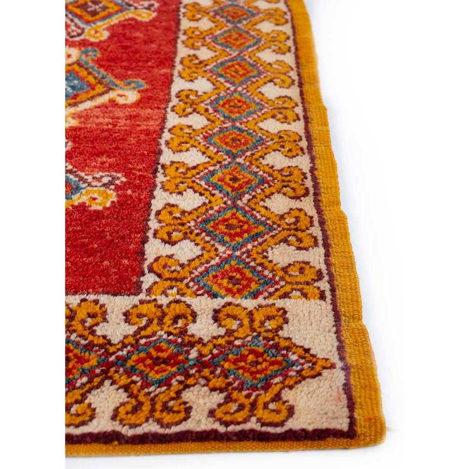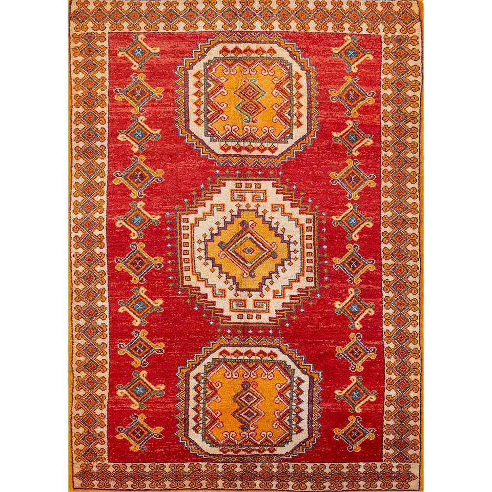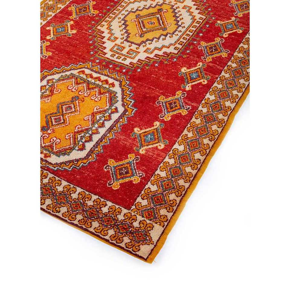 Alfombras de Lana Anudadas a Mano Nuray, Diseño Rectangular con Medallón Rojo Naranja y Patrones Abstractos para Uso Doméstico, para Sala de Estar o Dormitorio, 9x12, Pae-144