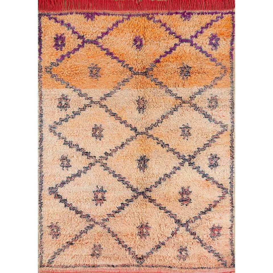 Alfombras de Lana Anudadas a Mano Nuray, Diseño Geométrico Abstracto Rojo Naranja para Entrada, Pasillo, Tamaño Rectangular 9x12, Modelo Pae-4615