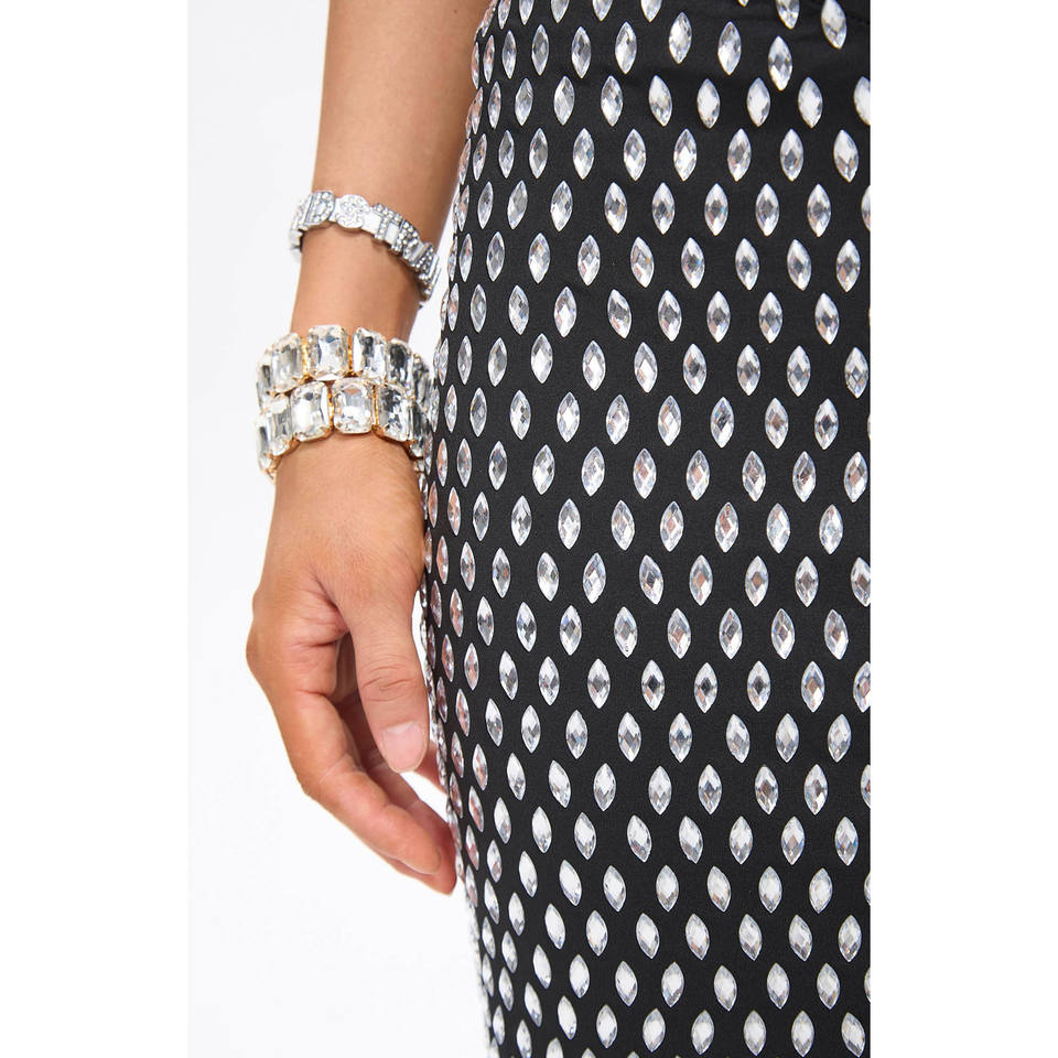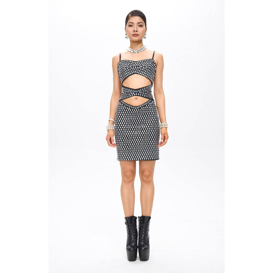 Vestido Mini Negro con Cristales y Recortes Decorativos Nure