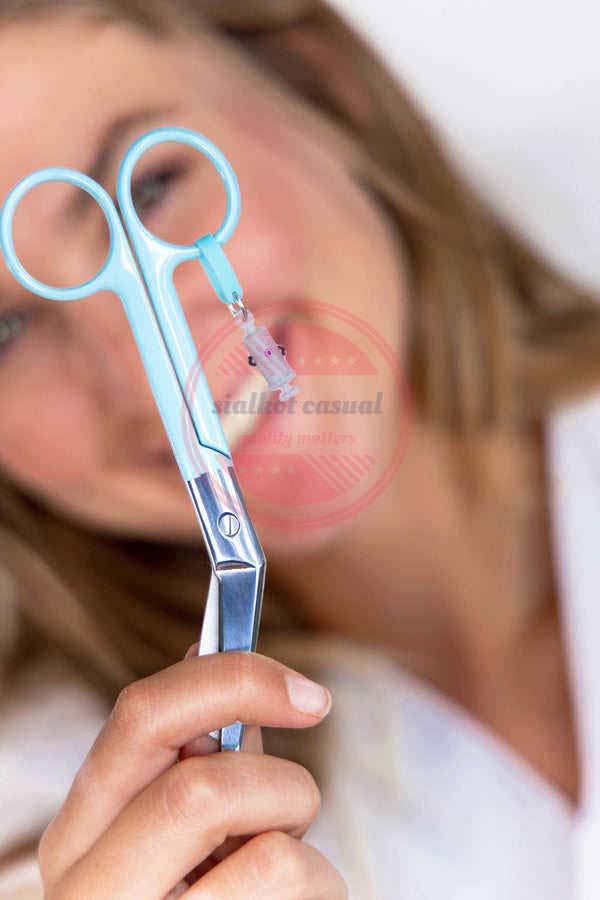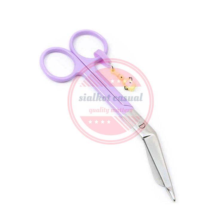Especificación:NURSING SCISSOR, made of stainless steel with a blunt tip to prevent accidental injury and a serrated edge for efficient cutting of bandages dressings and clothing