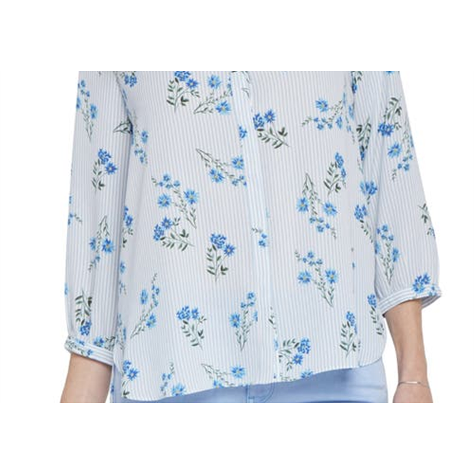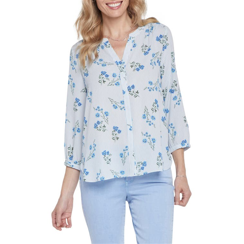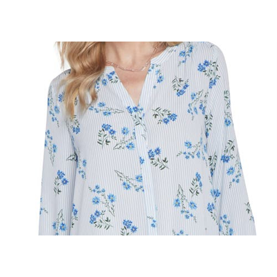 Blusa Formal Extra Grande Nydj, Estampado Floral Riviera Blossoms, Crepé, Lino Transpirable, Chifón, Corte Holgado, Larga, para Oficina, Primavera/Verano