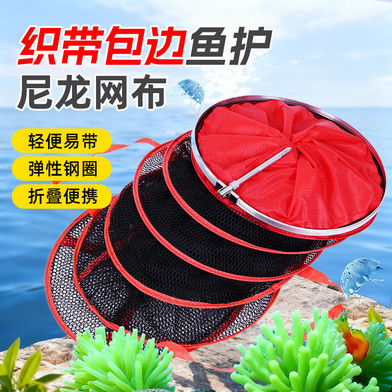 Red de Pesca Portátil de Malla de Nailon con Borde Negro