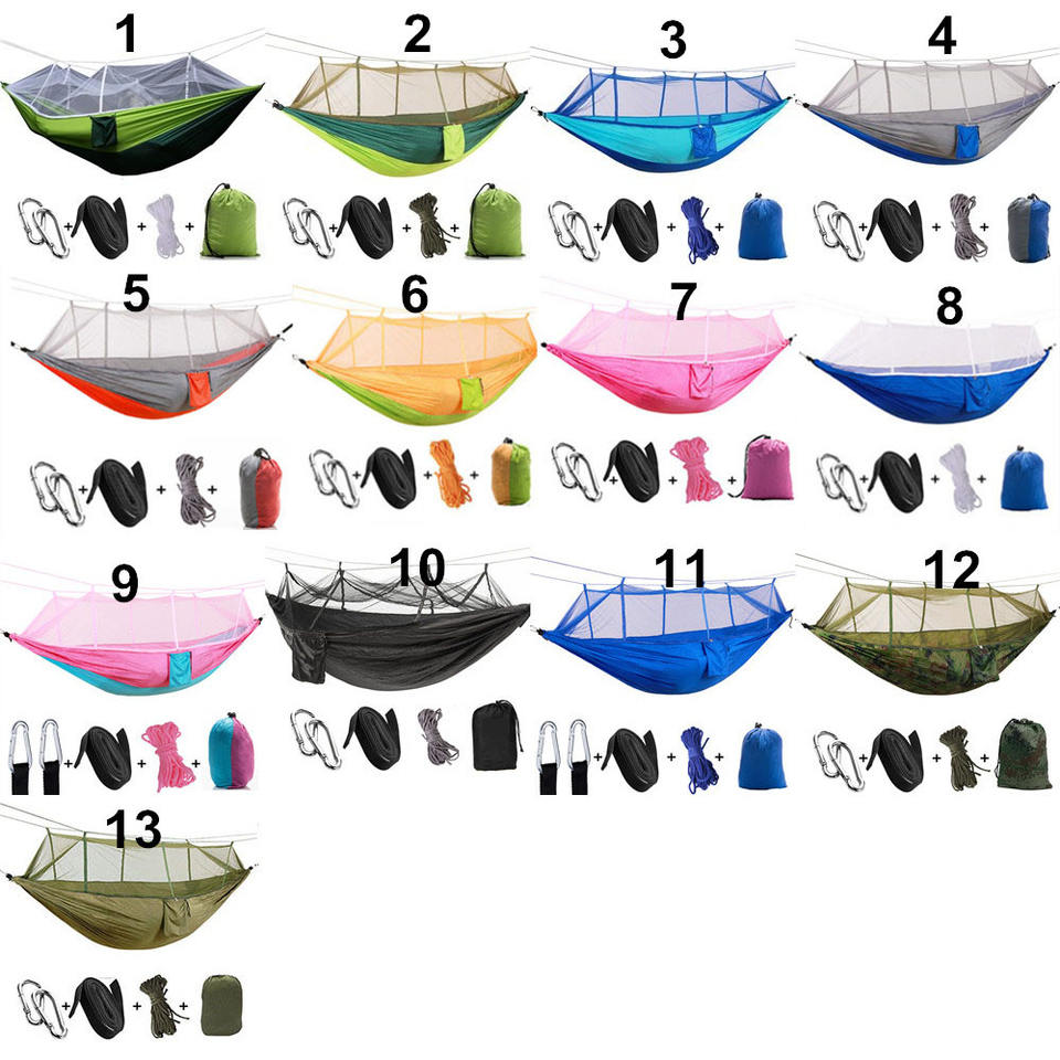 Hamaca doble de nailon para acampar, portátil, con mosquitera