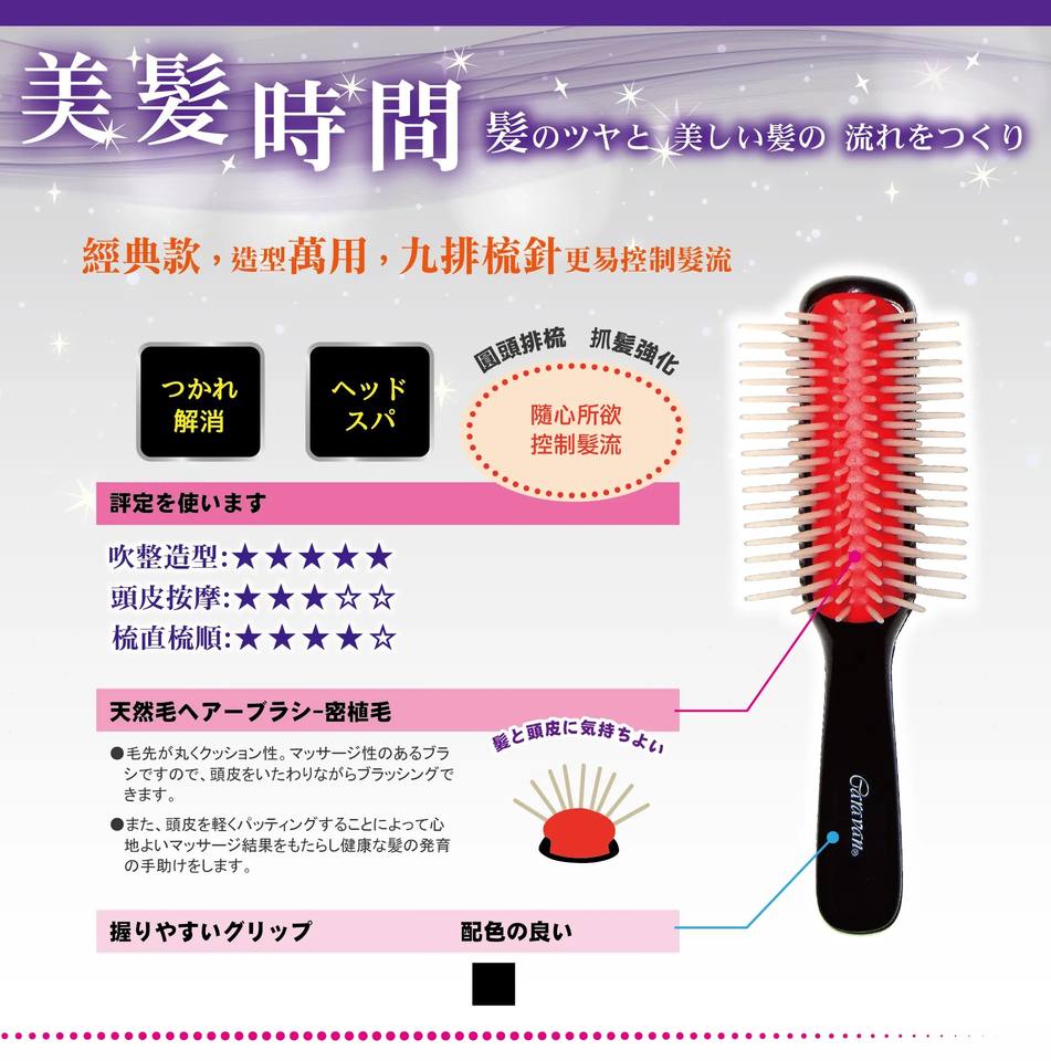 Característica:El cepillo es adecuado para cualquier peinado con peine.