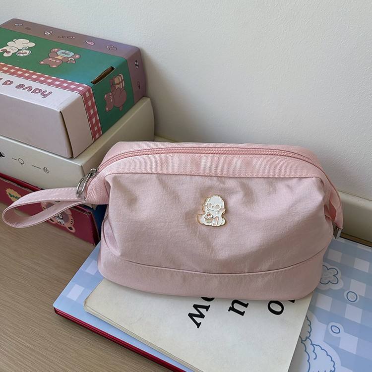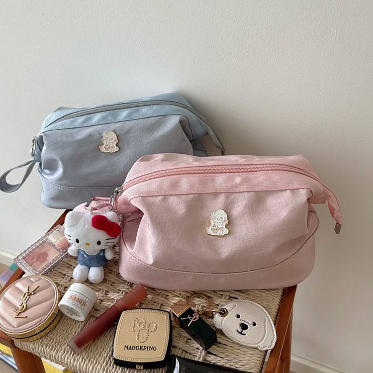 Bolsa de nailon impermeable para artículos de tocador, bolsa de almacenamiento de cosméticos con asa suave, color azul oxígeno, gran capacidad, para uso doméstico