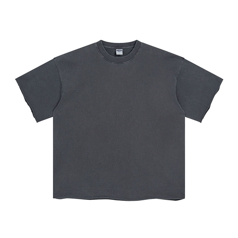 O cuello Hip Hop 100% algodón lavado Vintage 300 gramos peso pesado ácido lavado en blanco de gran tamaño DTG estampado personalizado camiseta para hombres