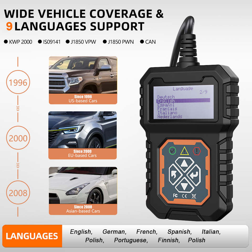 Escáner de Protocolos OBD2 EOBD CAN, Herramienta de Diagnóstico de Fallas para Automóviles de 12V, Lector de Códigos para Modelos de 1996 en Adelante, Herramienta de Diagnóstico de Luz de Motor, 1 Año