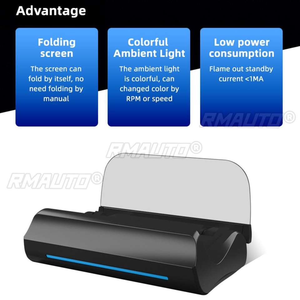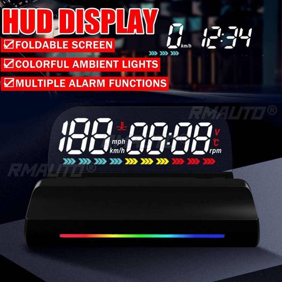 HUD OBD2 con Luz Ambiental Colorida, Función de Alarma, Herramienta de Conducción, Pantalla Plegable, Funciones de Alarma, Accesorios para Automóviles