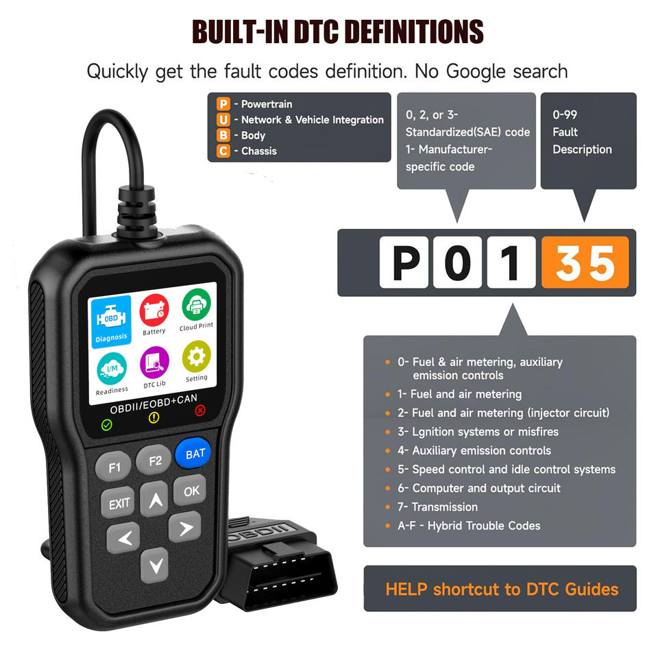Escáner OBD2 con Biblioteca de Consulta de Códigos DTC, Herramienta de Diagnóstico Automotriz Profesional, Lee e Interpreta Códigos, Lector de Luz de Advertencia del Motor