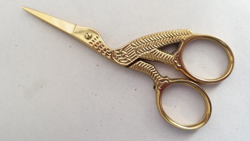 Tijeras OBEXA Fancy Gold Stork con Bordado, para Diestros, Tipo Recto, con Hoja de Acero Inoxidable y Punta Afilada, Herramienta de Belleza