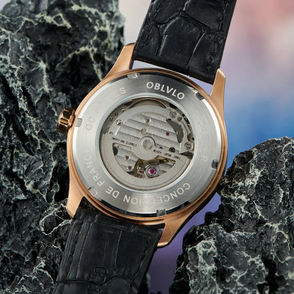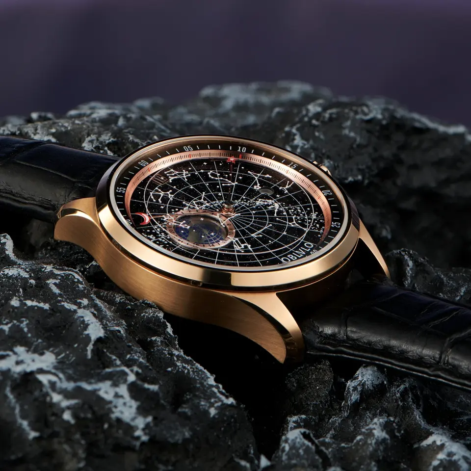 Reloj Mecánico Automático OBLVLO GC 2026, Diseño Simple y Moderno para Hombre, Correa de Cuero con Estrella y Tierra Luminosas, Resistente al Agua, Regalo Casual