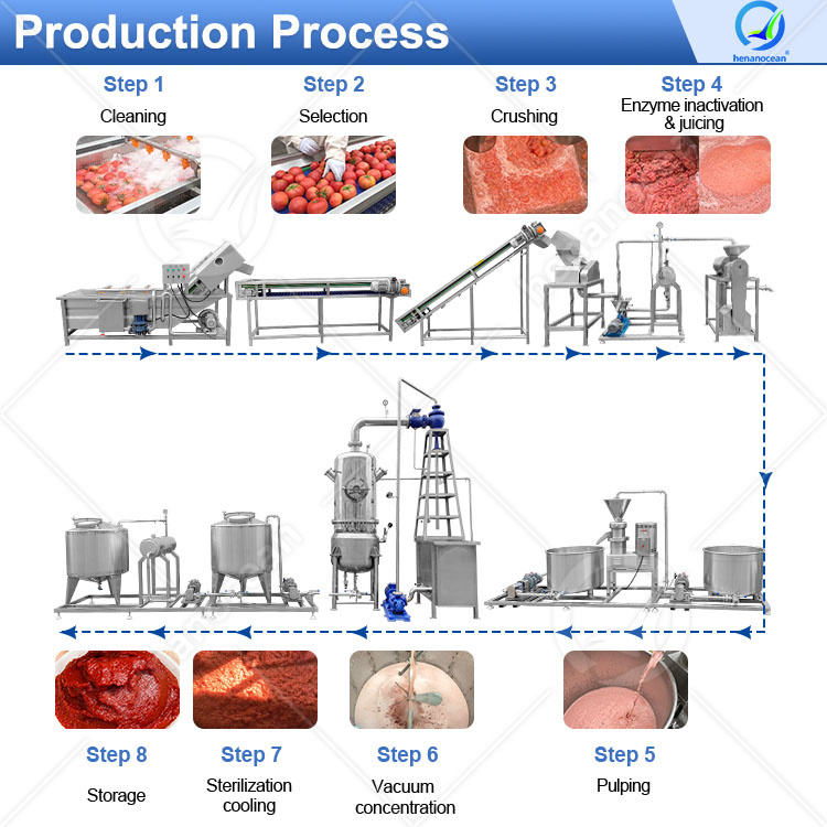 Línea de producción automática de pasta de tomate enlatada OCEAN, máquina de planta de proceso de salsa de tomate pequeña a la venta