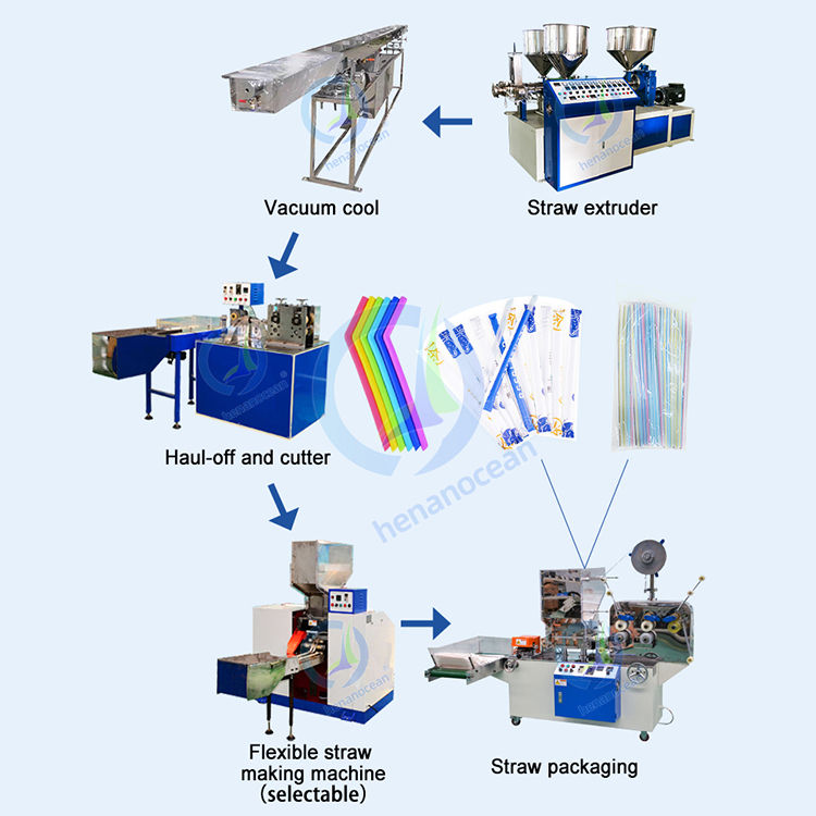Línea de Producción Automática de Pajitas de Almidón de Maíz para Bebidas de Café OCEAN, Máquina Flexible para Doblar Pajitas