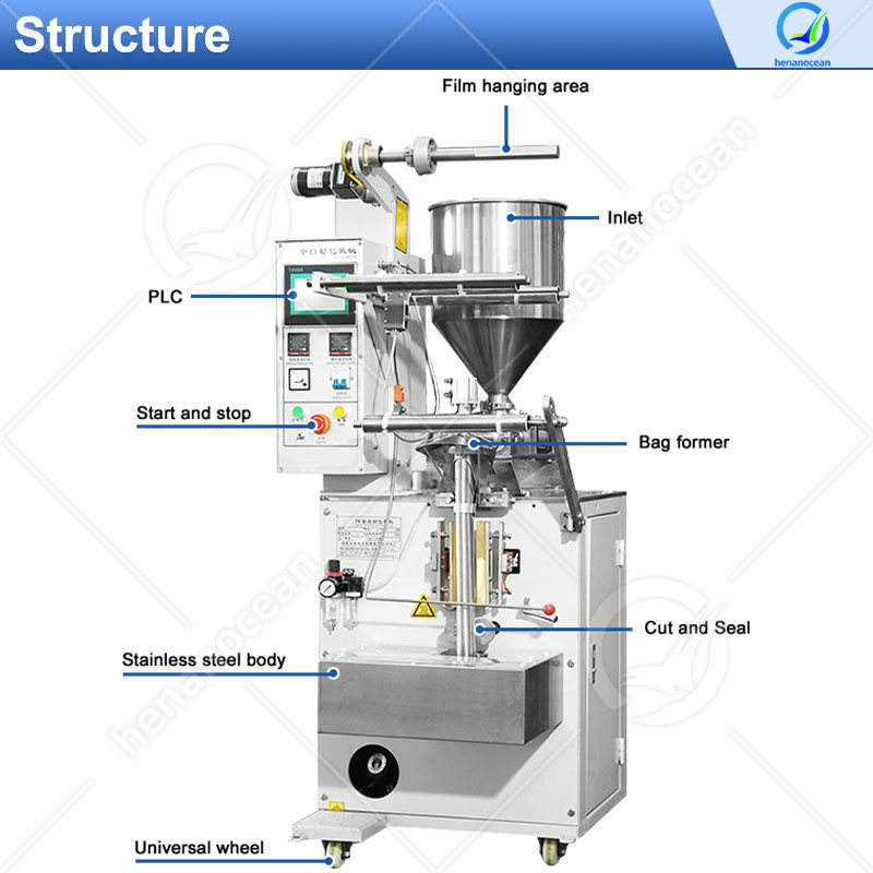 Máquina para Envasar Miel de Abeja OCEAN en Bolsitas con Sellado de 3 o 4 Lados, para Aderezos, Mermeladas y Salsas