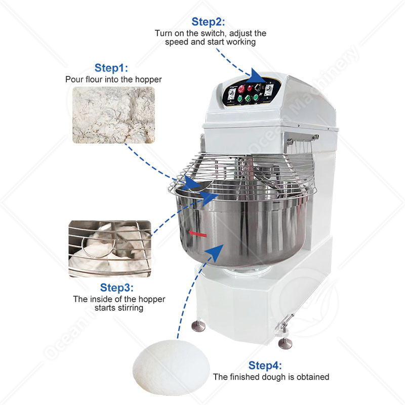 Mezclador en espiral de fideos para pasteles de acero inoxidable OCEAN, 15kg, 25kg, 50kg, 55kg, mezclador de masa Horizontal de Filipinas