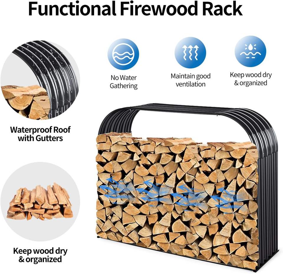 Estante para leña de alta resistencia de acero galvanizado corrugado ODM, soporte para troncos de almacenamiento interior/exterior para maceta de jardín doméstico incluida