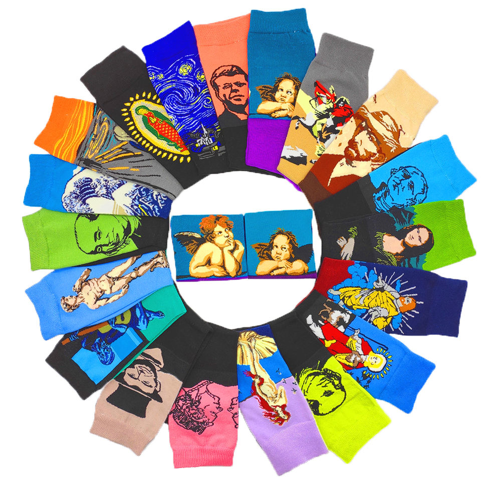 Calcetines de Algodón ODM Estilo Harajuku con Pinturas Famosas de Van Gogh, Mona Lisa de Da Vinci, Arte Retro Vintage, Meias