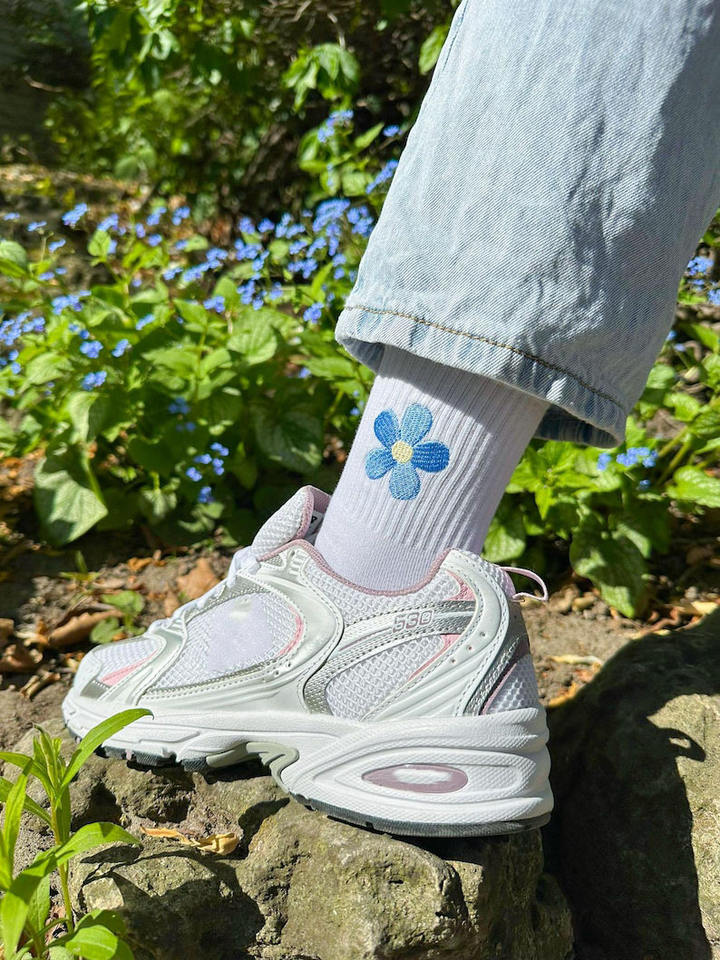 ODM calcetines de algodón bordados personalizados de alta calidad diseño de flores ecológico transpirable cómodo calcetines deportivos de equipo inferior