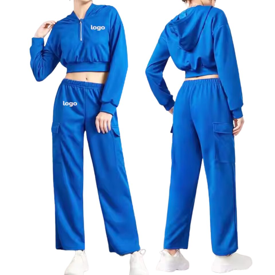 Chándal ODM de alta calidad deportivo hecho a medida para mujer, chándal de entrenamiento de algodón 100% de Color azul a precio razonable