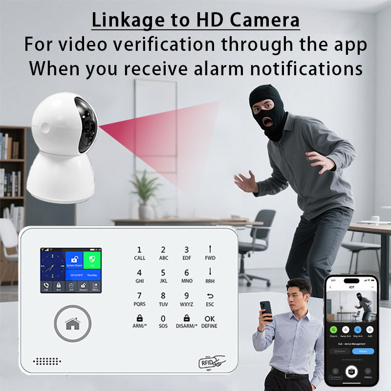 Sistema de Alarma de Seguridad para el Hogar Controlado por Teléfono Inteligente, Venta Caliente ODM, Cámara IP Inalámbrica WIFI GSM Portátil, Sensor de Movimiento, Detector de Fugas de Agua