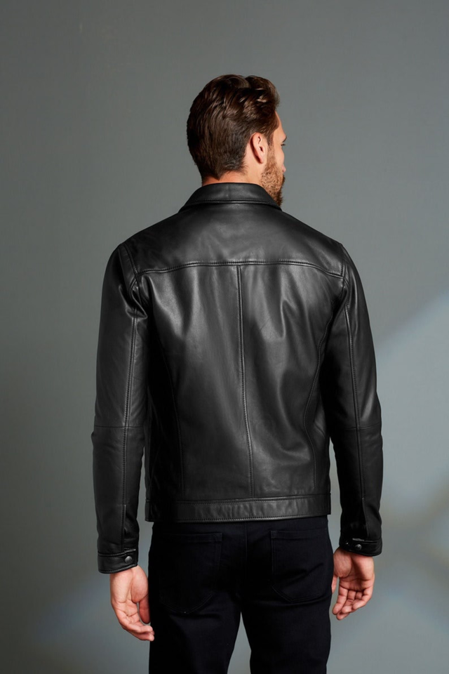Chaqueta de Cuero Negra con Cuello Alto y Cremallera para Hombre, Diseño Personalizado, Chaqueta de Cuero Vintage de Alta Calidad para Hombre