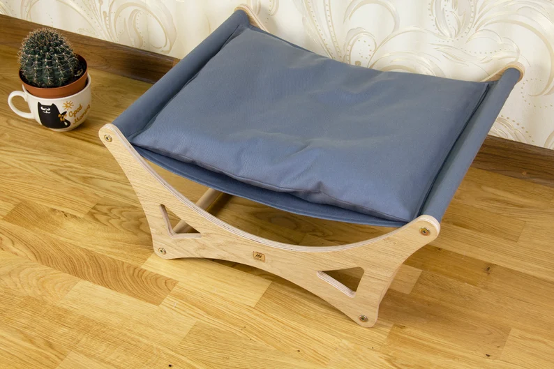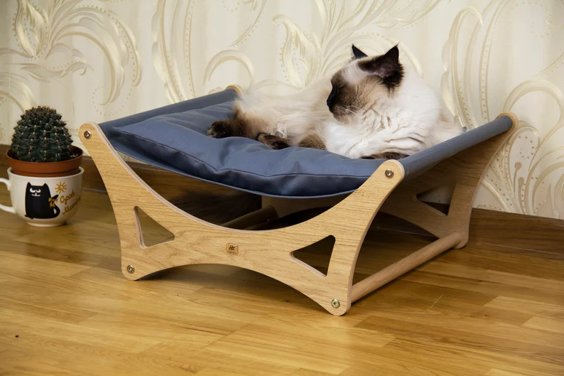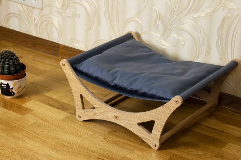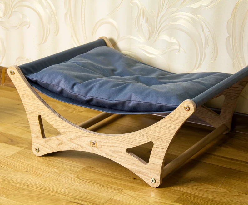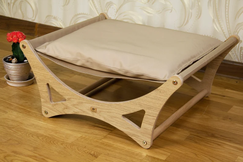 Cama de madera para mascotas de diseño personalizado ODM OEM para gatos Cama de madera elegante con muebles de almohada cómodos