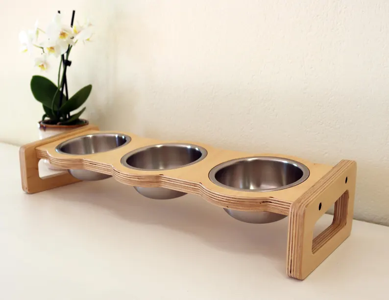 Estación de alimentación de madera con cuencos de viaje de acero inoxidable para gatos y perros ODM OEM respetuoso con el medio ambiente