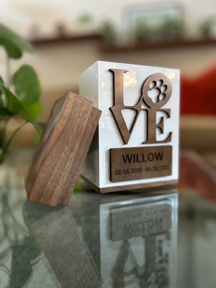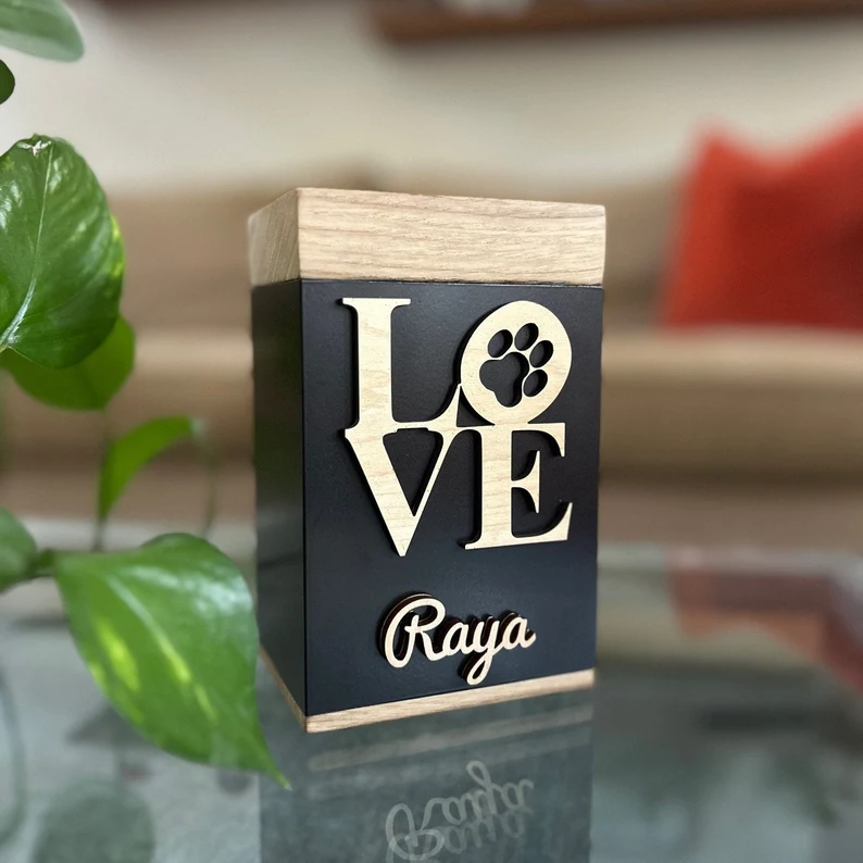 Urna Funeraria para Perros de Lujo Moderna, Personalizada con Nombre y Huella, 50 LBS, Ecológica, de Madera de Nogal Americano, Recuerdo Cálido, ODM OEM