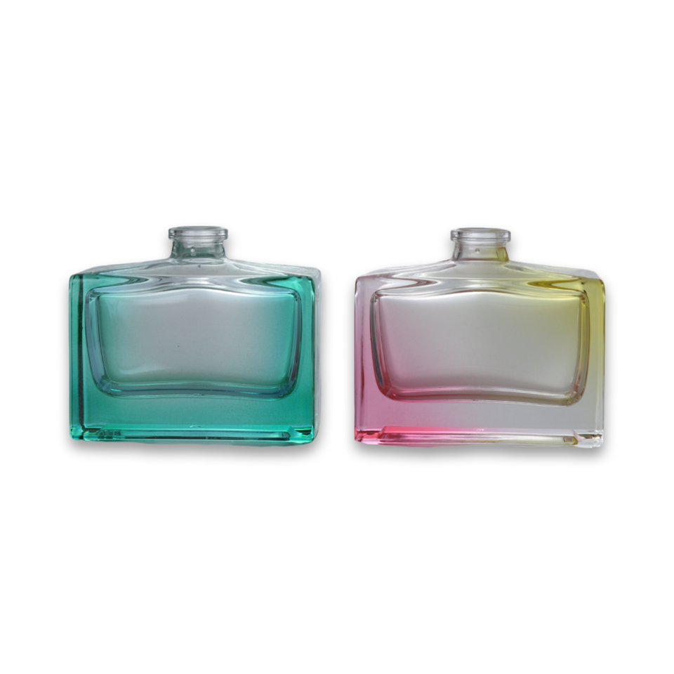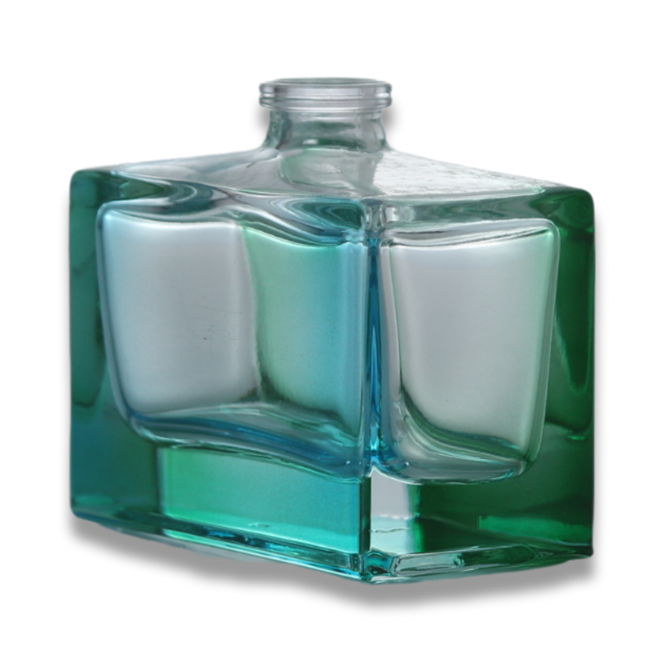 ODM OEM Botella de perfume Botella cuadrada personalizada Serie 50ml 100mL Botella de perfume de vidrio degradado azul simétrico