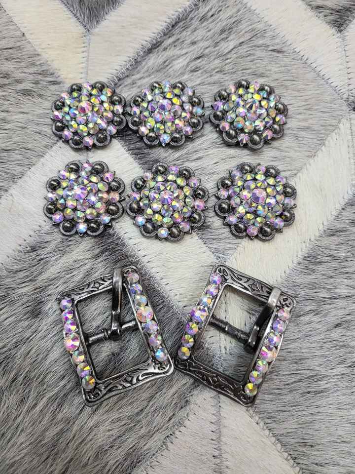 Horse Tack Adornos Piedras Decoración Hebilla y Conchos Set de montaje