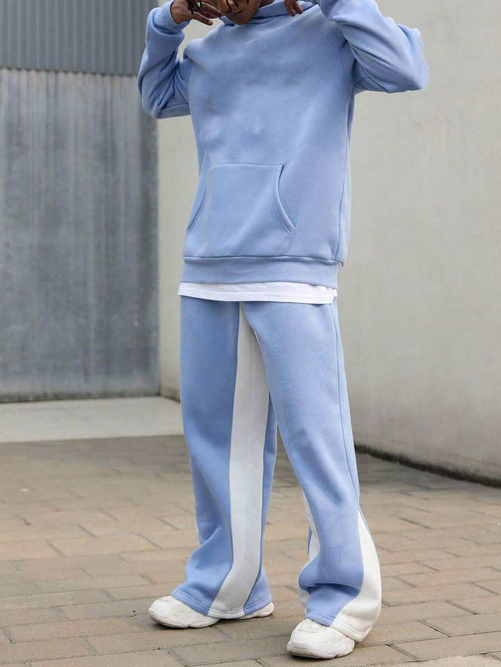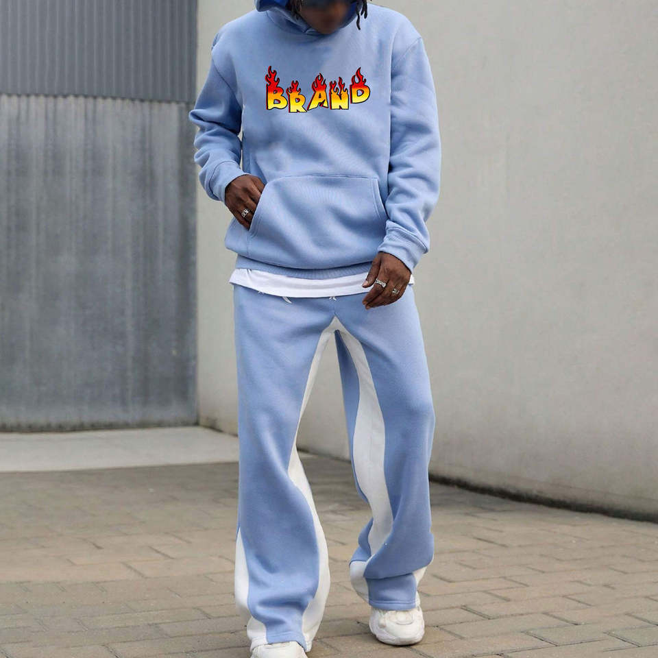 Conjunto Deportivo OEM 100% Algodón Felpa, Sudadera con Capucha y Cordón Ajustable, Pantalones Anchos para Invierno, Color Azul Claro Personalizado con Estampado