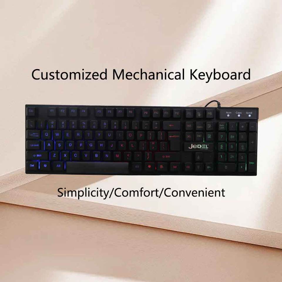 OEM 104-Keys Tamaño completo Iluminación láser Keycap Gaming Keyboard Versión de diferentes idiomas Teclado con cable para oficina o juegos