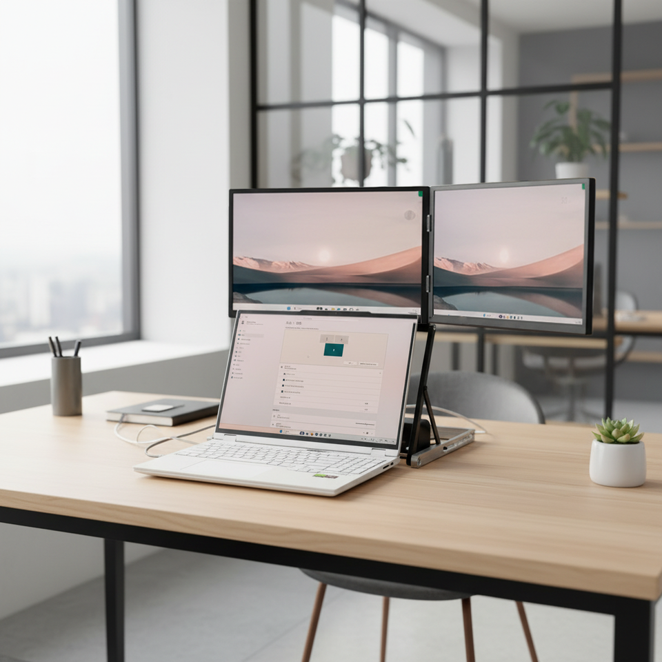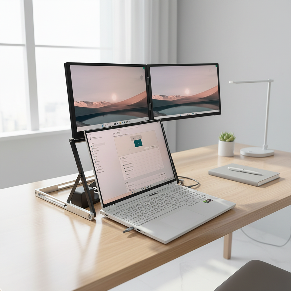 Monitor Portátil Dual OEM de 15.6 Pulgadas Sin Controlador, 1080P IPS, Plegable, Extensor de Pantalla para Laptop, Tipo-C, HDMI, Altavoz Integrado