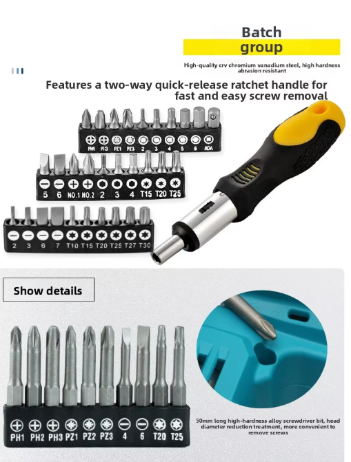 Destornillador / Mango de destornillador de carraca / Cinta métrica 3M, etc.