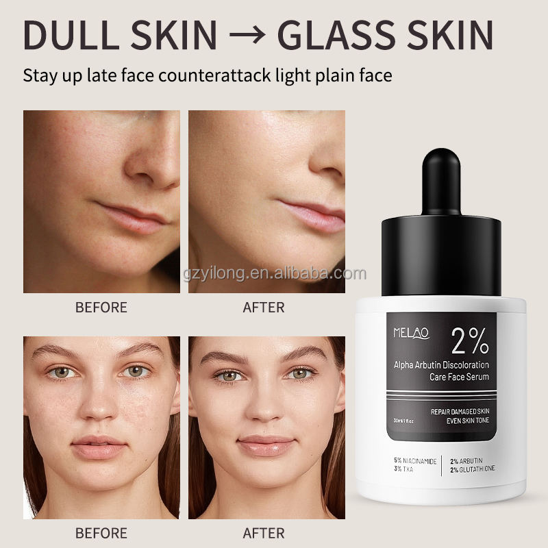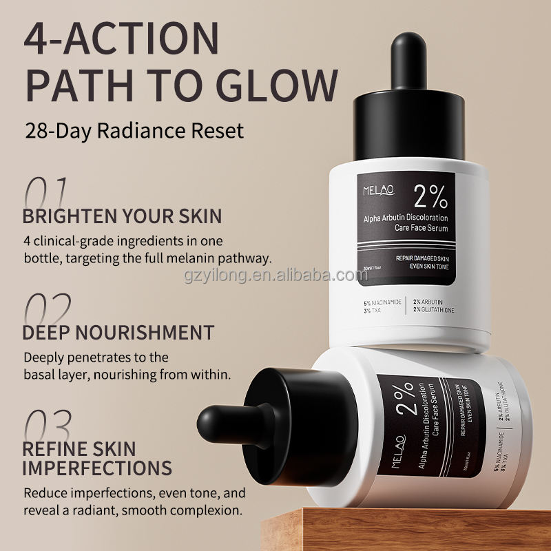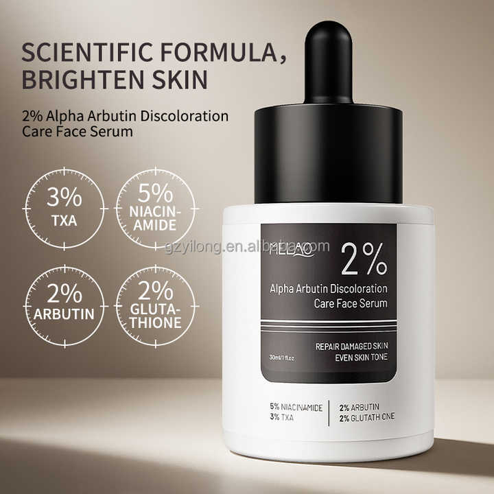 Suero Facial OEM con 2% de Alfa Arbutina, Blanqueador de Piel, Reduce Manchas, Hiperpigmentación, Glutatión, Vitamina C