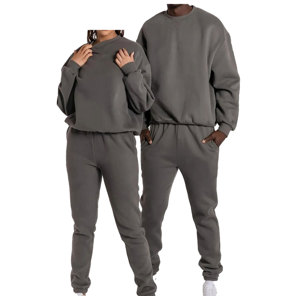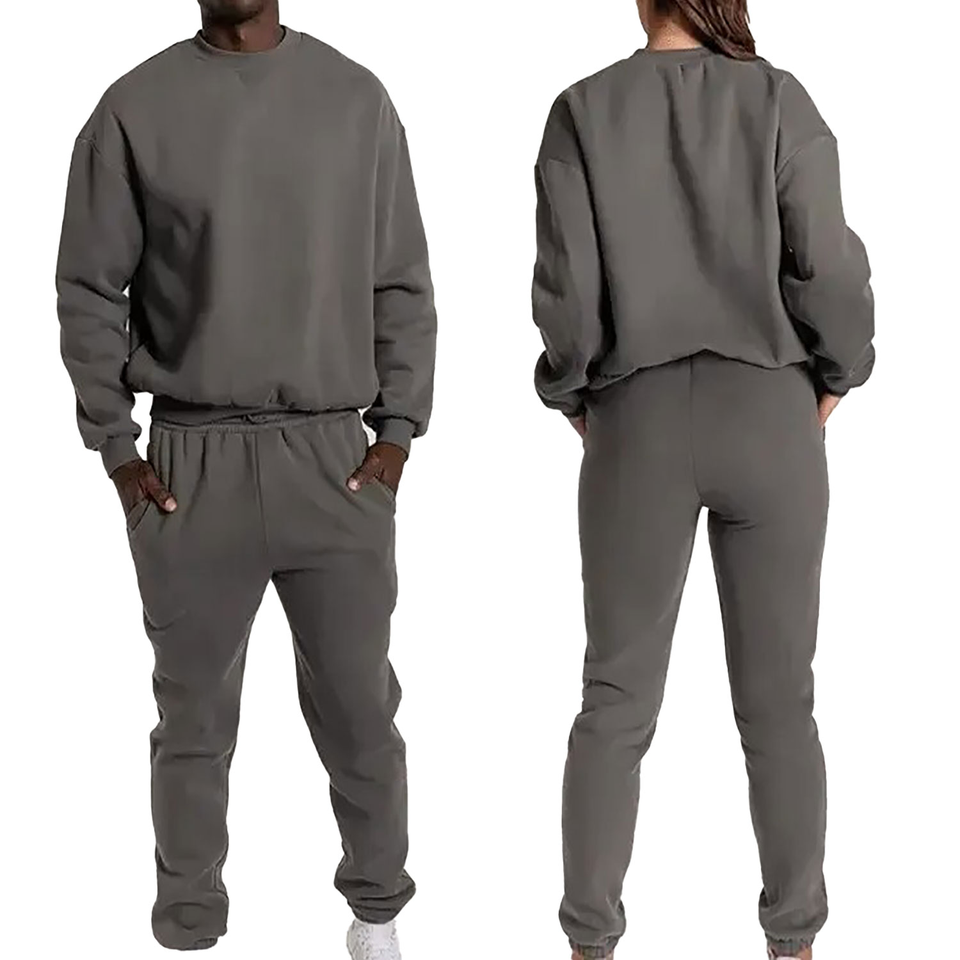 Conjunto Deportivo de Invierno de 2 Piezas para Hombre y Mujer, Talla Grande, Informal, Color Sólido, Personalizable, Sudadera con Cuello Redondo, 100% Algodón