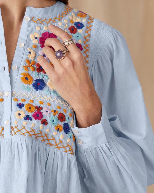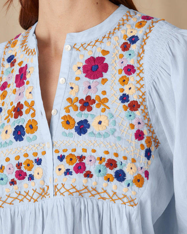 Blusa de Mujer OEM 2026 Primavera Verano, Ropa Femenina Personalizada, Informal, 100% Algodón, Cuello Redondo, Manga Farol, Bordada