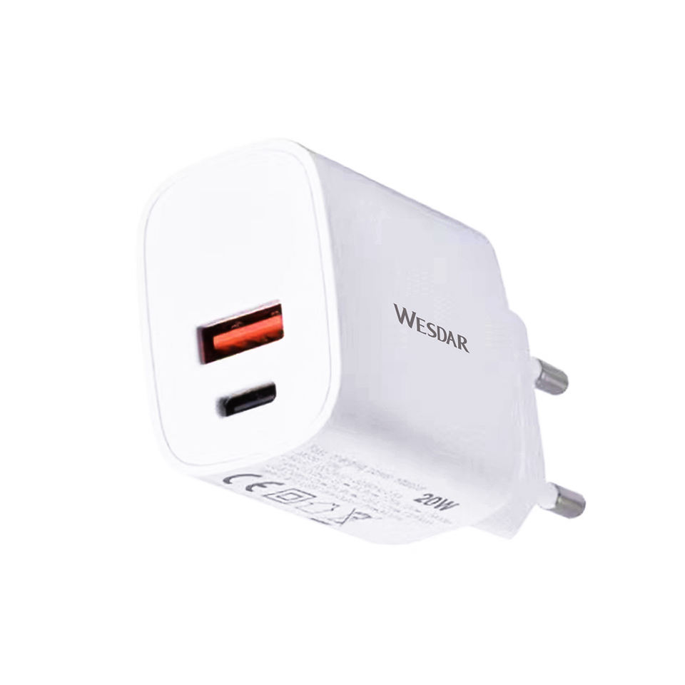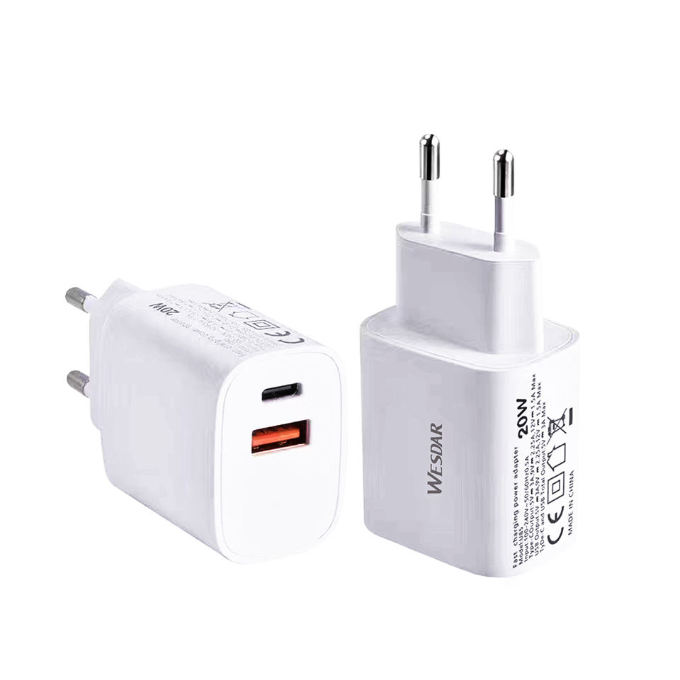 Cargador Rápido PD de 20W OEM, Puerto Dual USB-C+USB-A, Enchufe EU/US, Cargador de Pared Universal de Viaje para iPhone/Samsung/Pixel