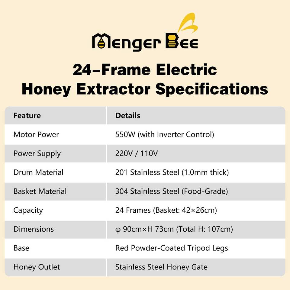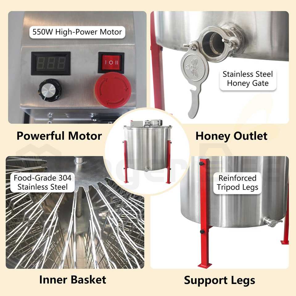 Cantidad de marcos de cesta interior:24 unidades, puede extraer 24 panales de miel de profundidad completa