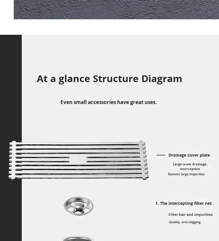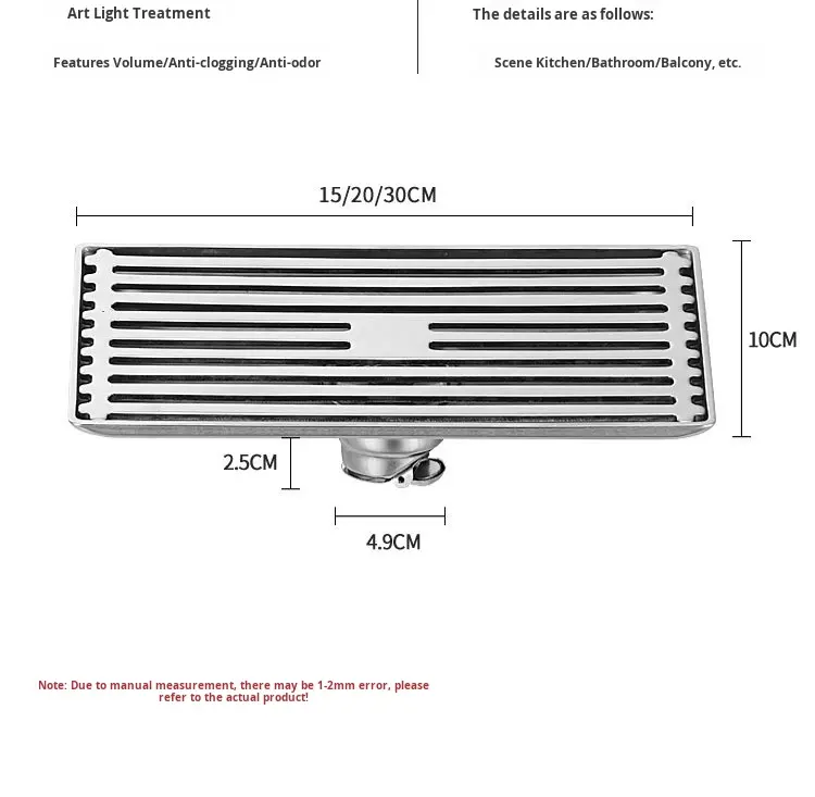 Filtro de Desagüe de Piso Rectangular de Acero Inoxidable 304 OEM, Engrosado, Antiinsectos y Desodorizante, DN50, para Baño, con Superficie Cepillada