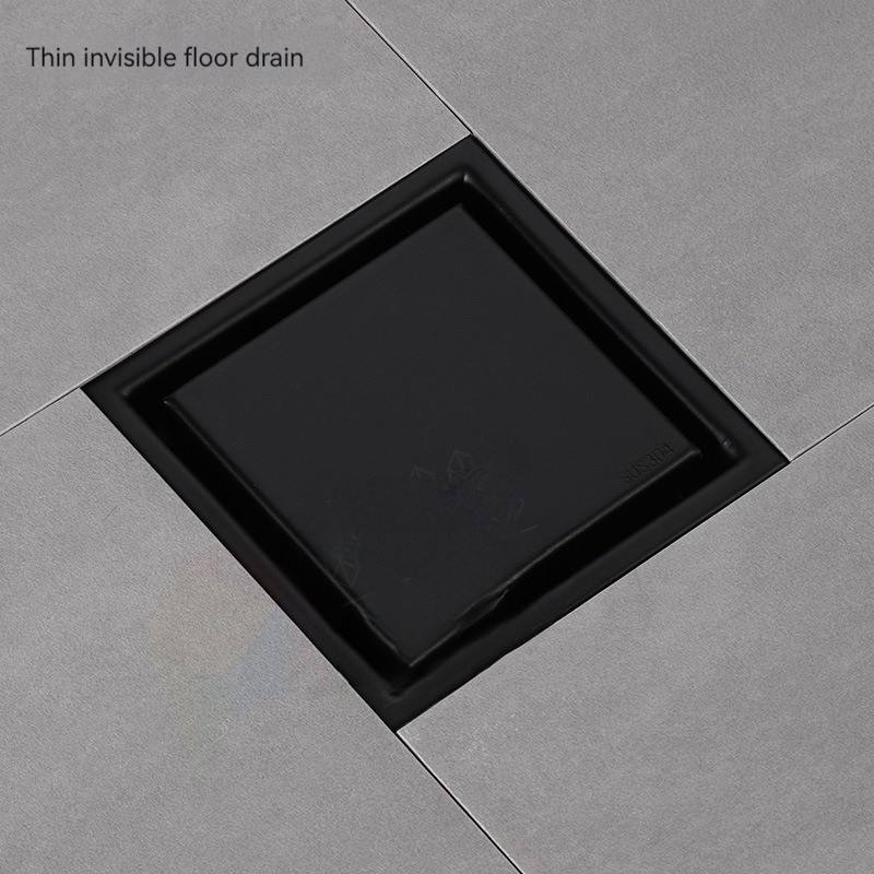 OEM Desagüe de ducha cuadrado de acero inoxidable de 4 pulgadas con inserto para baldosa 216, cubierta de rejilla invisible y filtro cepillado para baño