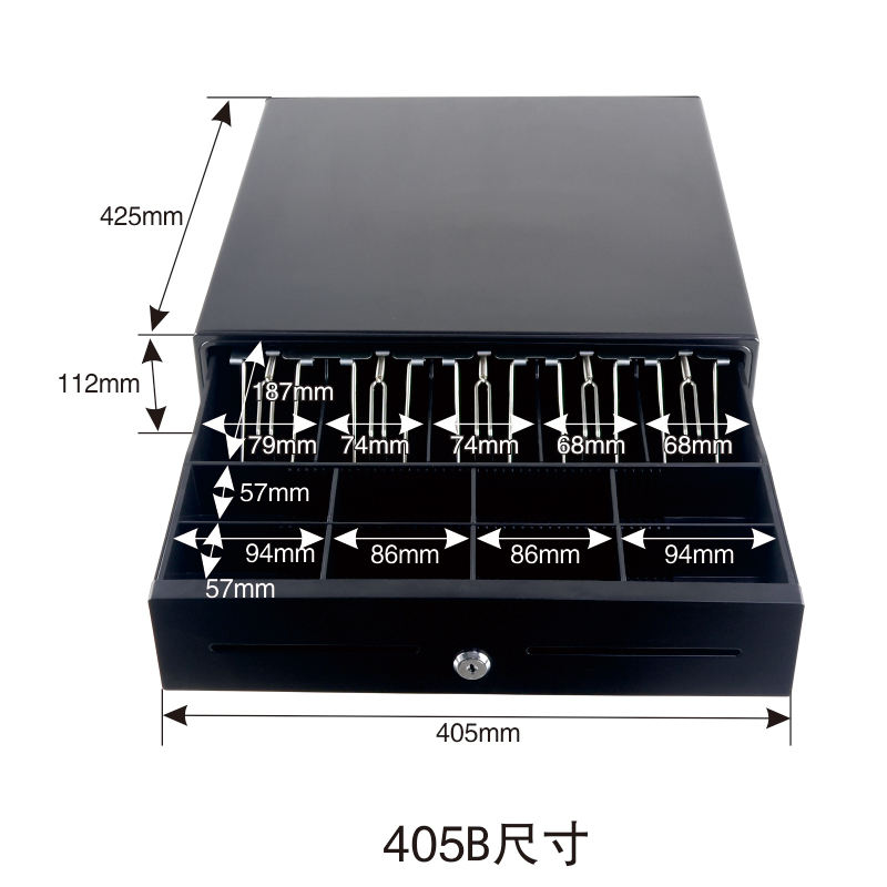OEM 405B RJ11 USB Caja registradora eléctrica Cajón de dinero Caja de efectivo para POS Business 5 Bill 8 Bandejas de monedas Cajón de efectivo con cerradura de llave